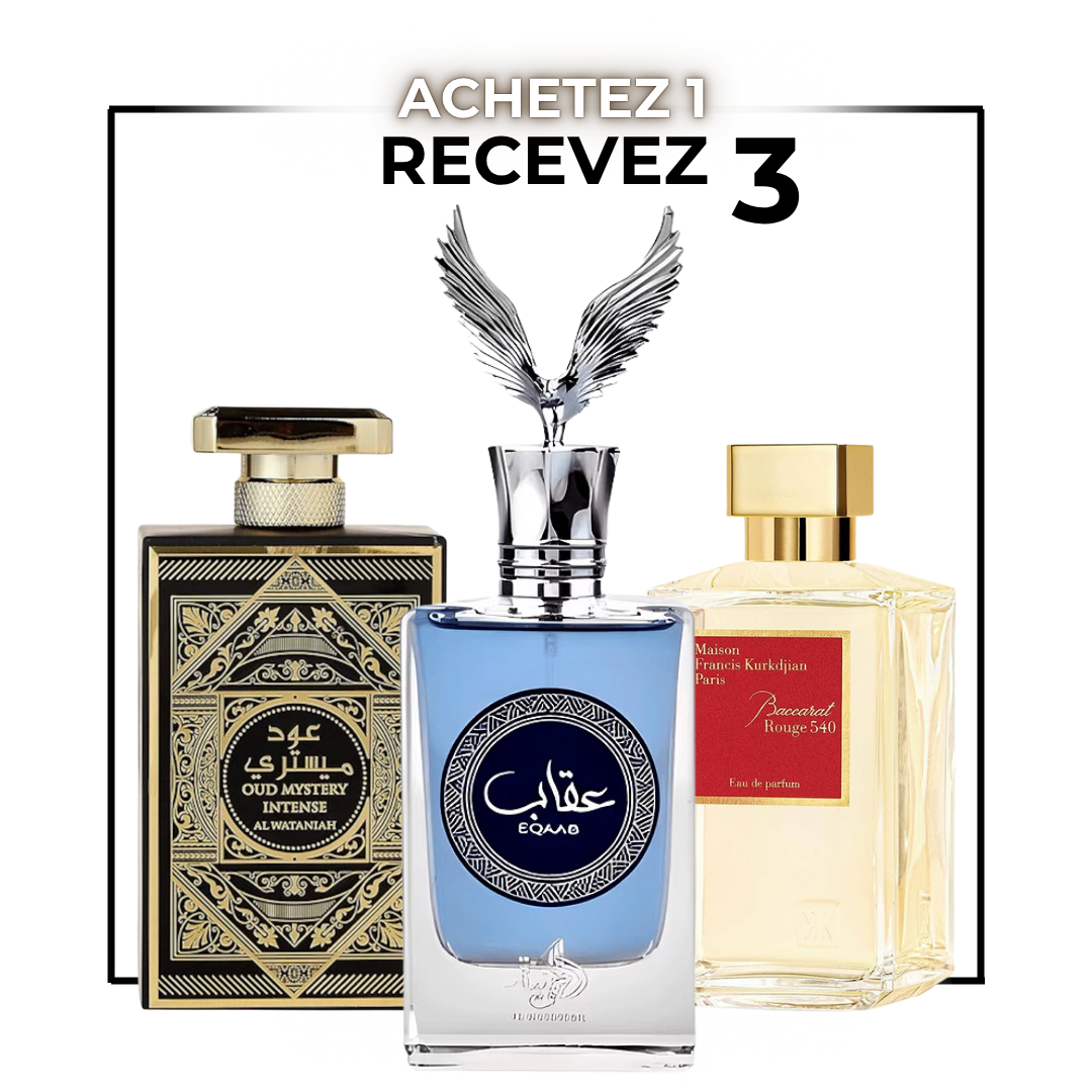 Pack Trio Parfums Arabes pour Homme – Oud Mystery | Eqaab Blue | Rouge Essence